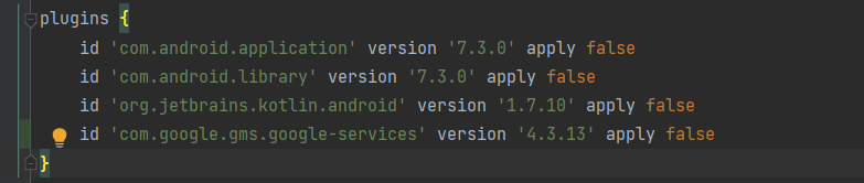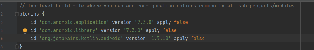 루트 수준(프로젝트 수준) Gradle 파일의 형식이 스튜디오 버전과 동기화가 안되어 있는걸 확인할 수 있습니다.